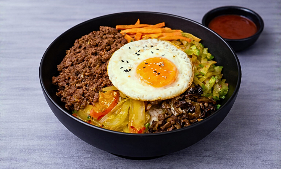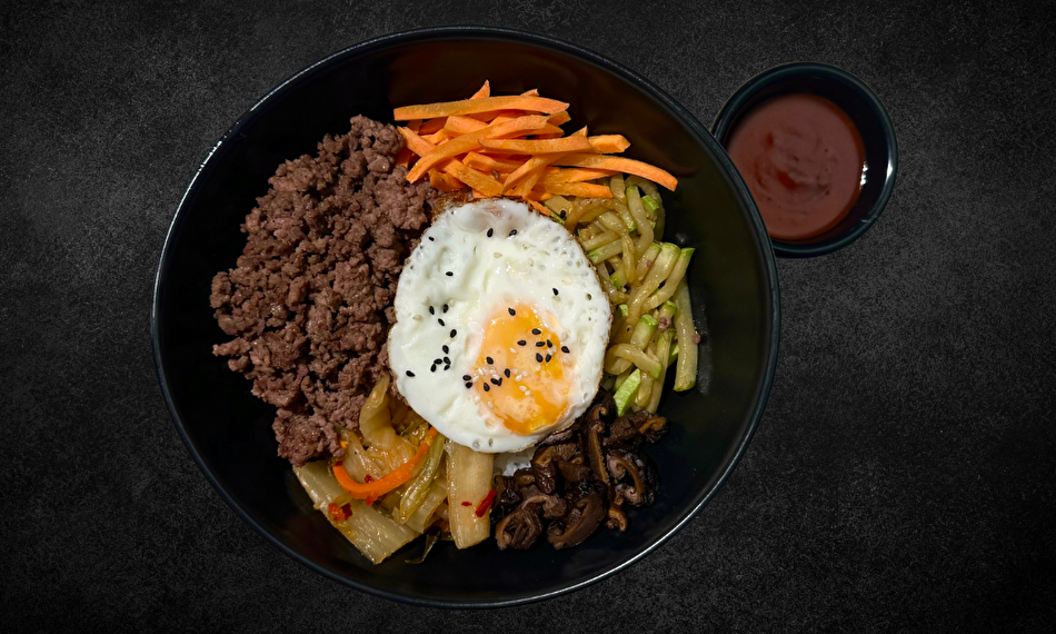 ბრინჯი, საქონლის ფარში, კვერცხი, სტაფილო, სოკო შიიტაკე, ყაბაყი, კიმჩი, ცხარე სოუსი, სოიოს სოუსი