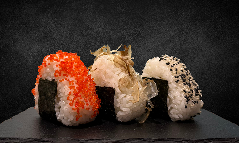 ონიგირი ქათმით, კრევეტებით და თოვლის კრაბით